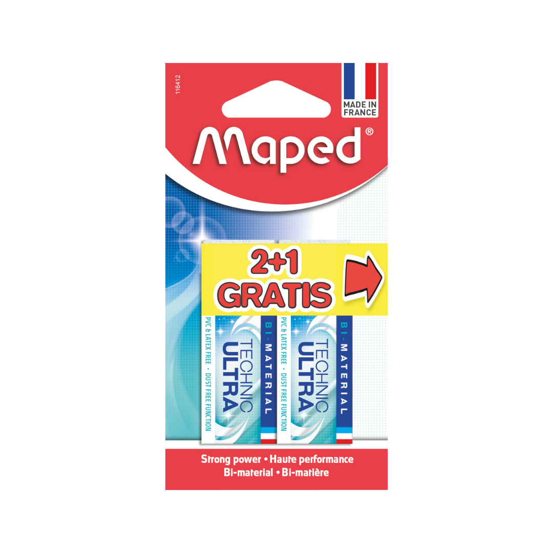Basta con i residui infiniti di gomma! Con le gomme Maped Technic 600, puoi cancellare senza sporcare il tavolo e mantenendo il foglio pulito.